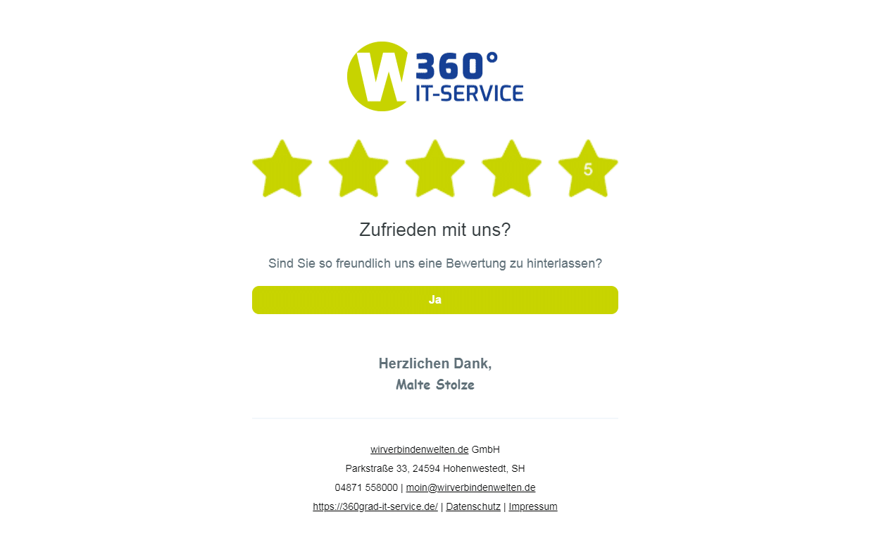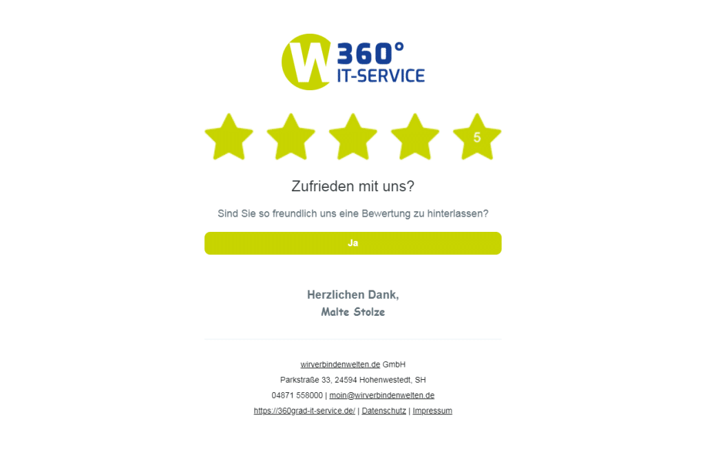 Mit jedem erledigten Service-Ticket, Kaufabschluss oder versandter Rechnung, automatisch die Chance auf gute Bewertungen erhöhen